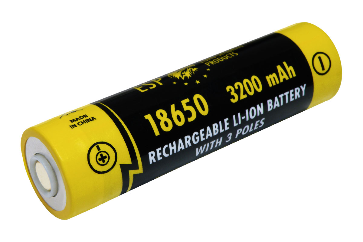 Napájení svítilny zajišťuje výhradně jeden vyměnitelný akumulátor 18650 se třemi póly od ESP, který je součástí balení. Má ochranný obvod a unikátní konstrukci se 3 póly, která zajišťuje správnou funkci obou nezávislých vypínačů. S jinými bateriemi svítilna SMARTAX nefunguje.